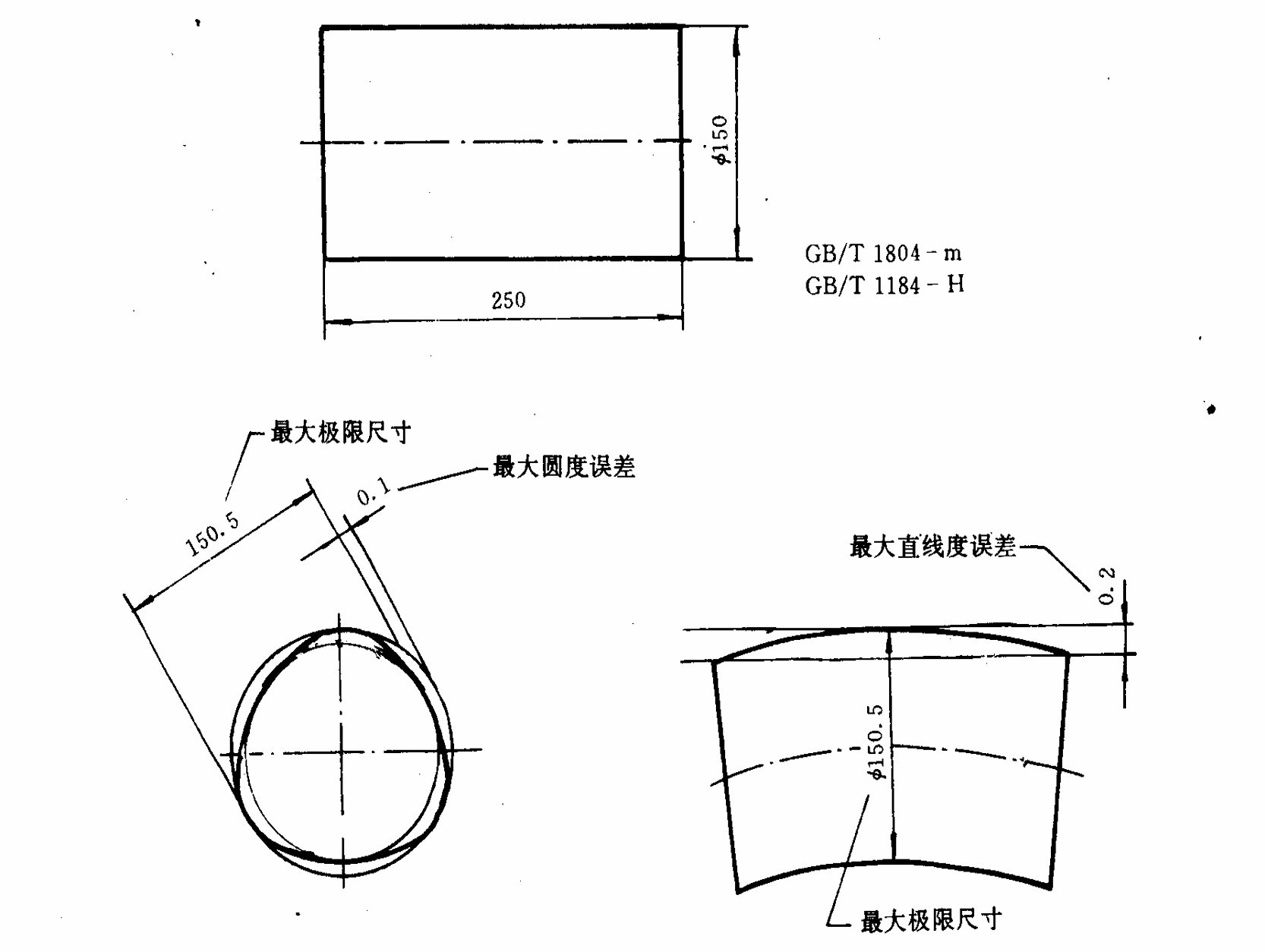 2如因功能要求,圆柱度应小于圆度、直线度和平行度的未注公差的综合结果,应在被测要素上按GB/T1182的规定注出圆柱度公差值。